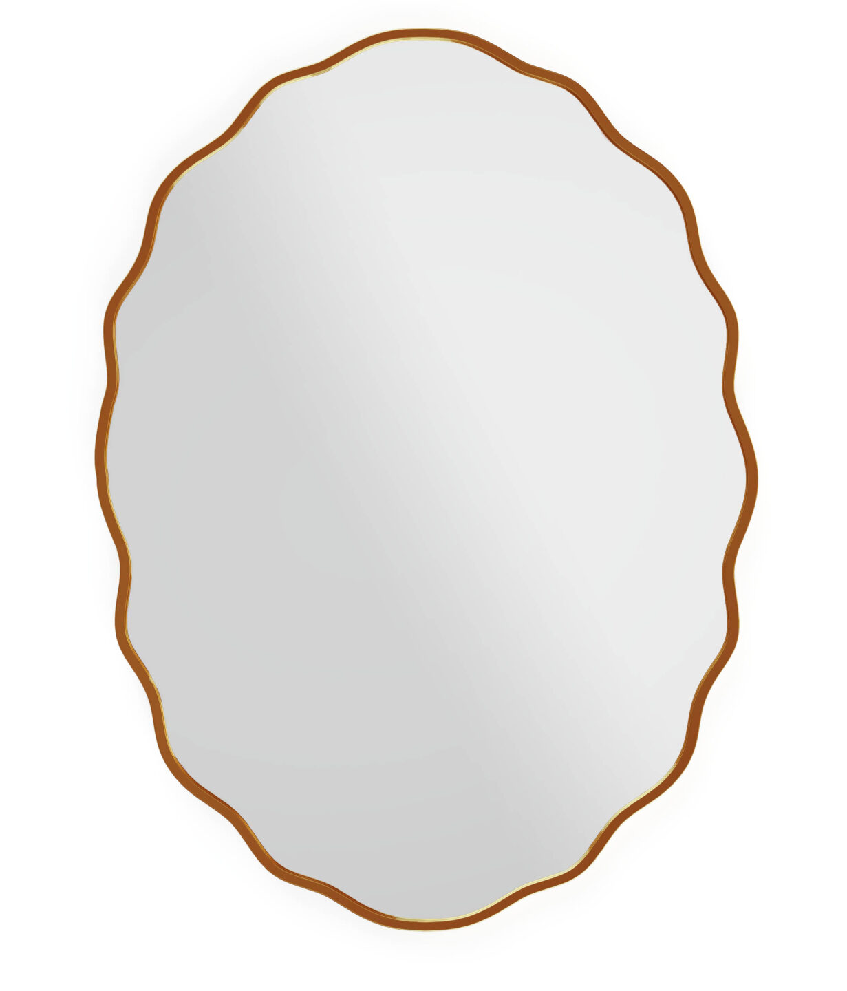 Ribbon Oval to lustro, które wprowadza do wnętrza nowoczesną lekkość i artystyczny charakter. Jego forma — pofalowany owal otoczony miedzianą ramą — przełamuje klasyczną symetrię i działa jak współczesny kontrapunkt. Delikatne fale nadają mu miękkości, a jednocześnie tworzą wyrazistą, dekoracyjną linię, która przyciąga wzrok i dodaje przestrzeni dynamiki.